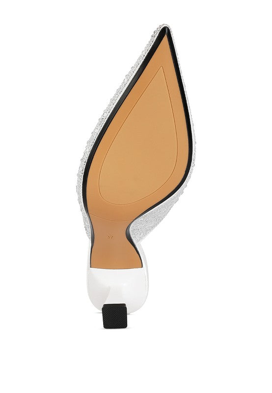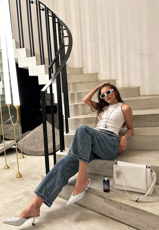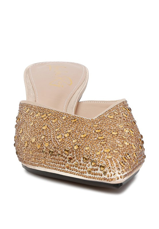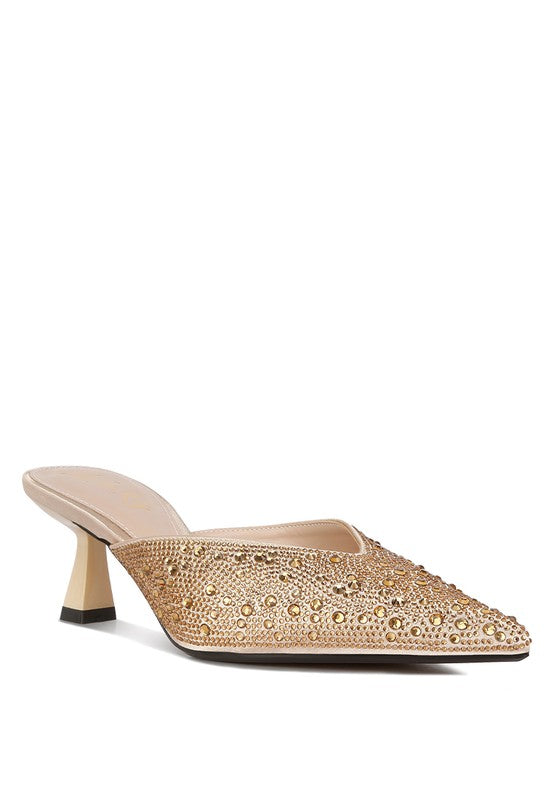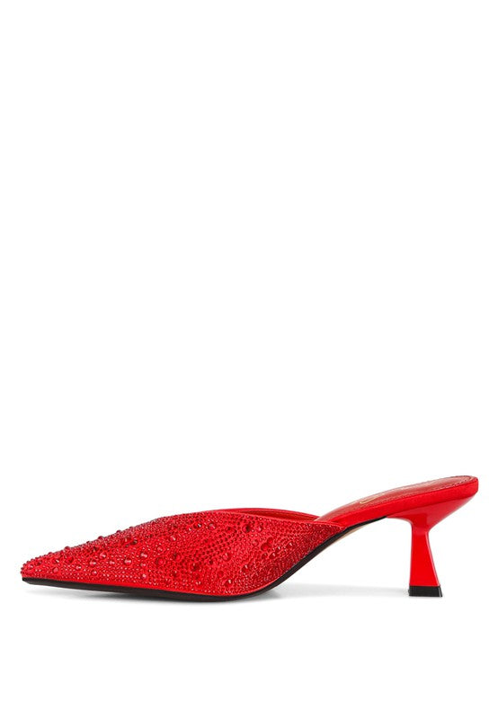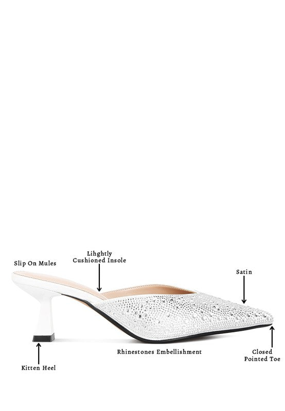 The perfect amalgamation of comfort and chic! The mules are dazzling with gorgeous rhinestones embellishments that look like beautiful dew drops. While they also give a relaxed fit with the lightly cushioned insoles and kitten heels. Easy to wear, versatile, and absolutely stunning, this pair is a must-have!