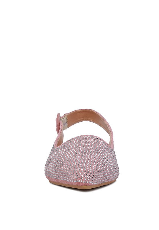 Add some bling to your fit with these gorgeous rhinestones embellished slingback mules. The pin buckle fastening gives a secure fit while the light cushion insoles make them a comfortable pair. The flat mules are perfect as wedding guest shoes and also make great transition shoes that go from day to night!