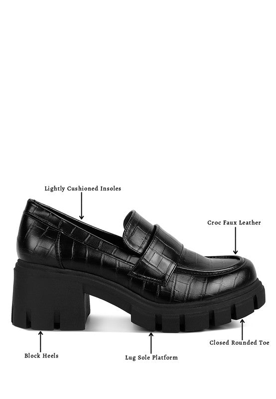 The chunky loafers are fun, quirky, and stylish with the chunky lug soles and platform detail. The croc print looks fashionable while the soft cushioned insoles cut strain. The chunky loafers are a must-have this season.