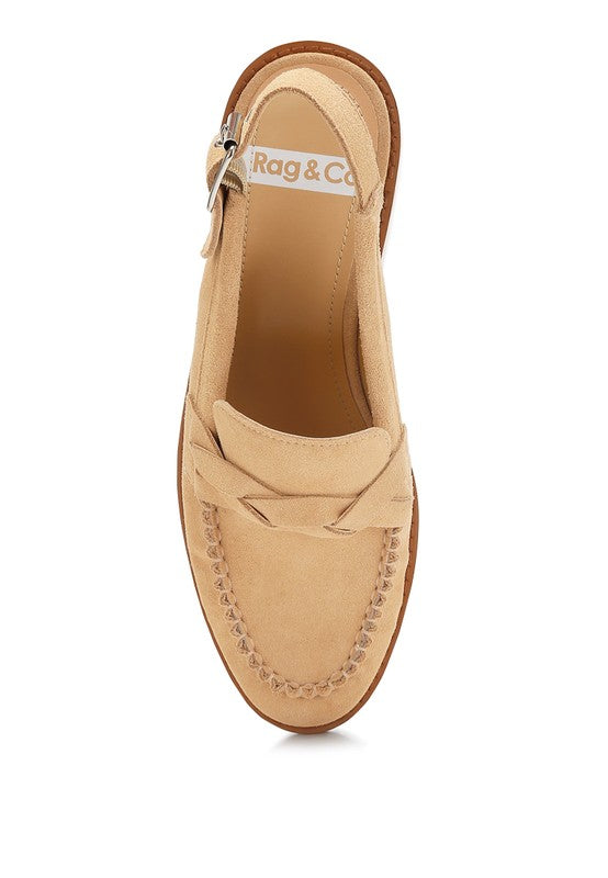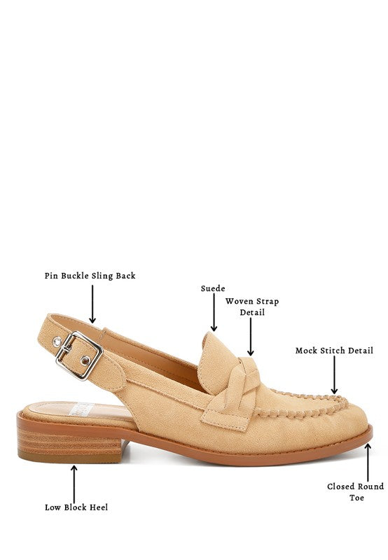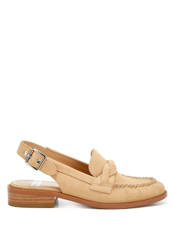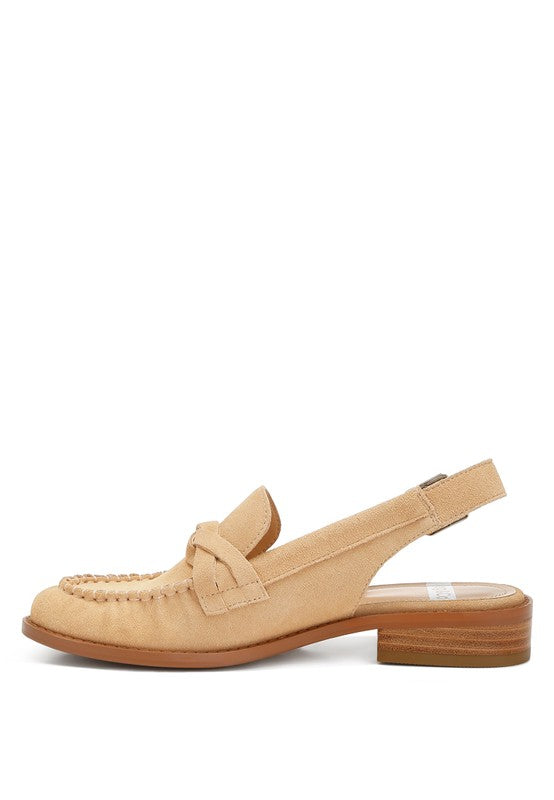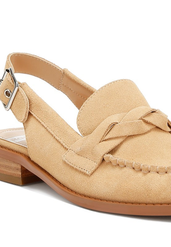 Comfortable and sophisticated, the loafers are stylish with the woven strap detail. The slingback detail gives the loafers a modern look. The slingback loafers are perfect for workwear with comfortable cushion insole that cuts strain.